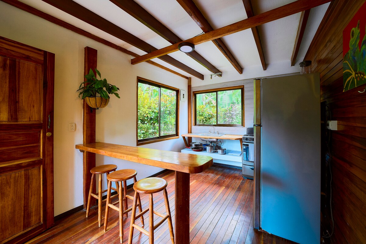 Karibisk stil! Blessed House er en karibisk lokal familieeiendom. Fem minutter fra Puerto Viejo, med døgnåpen sikkerhet, et fantastisk basseng med grillsett og kjøkken du kan dele, privat parkering og en fantastisk utsikt over alle tretoppene og kysten du trenger å utforske. Hummingbird Bungalow er et flott sted for par som ønsker sitt eget og vakre private og rolige sted eller for en liten gruppe eller familie på tre, hvor den tredje gjesten kan sove komfortabelt i sin egen seng.