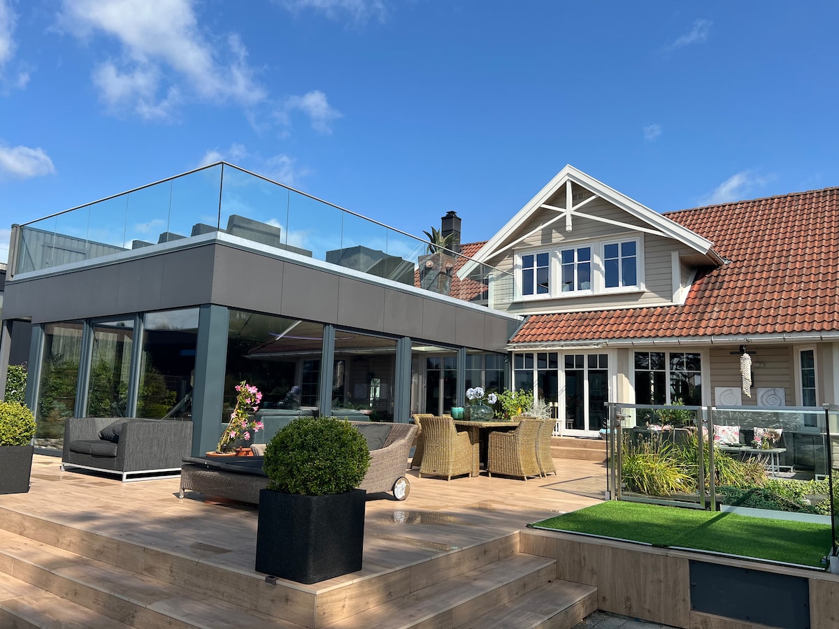 Fantastisk hus ved strand og svømmebasseng