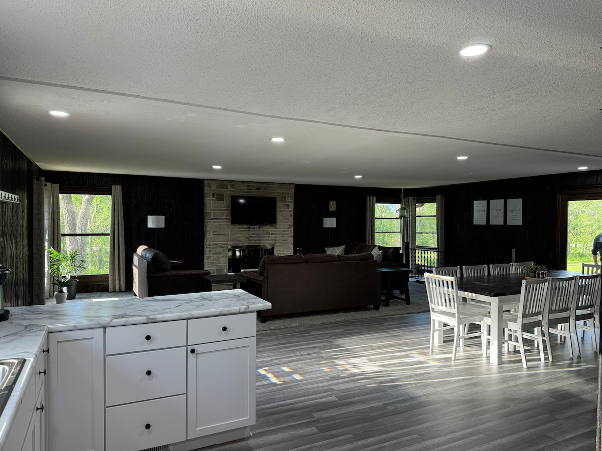 Koselig, stille, privat, rent med FIBERINTERNETT Vi er en gård i skogen 4 miles fra Thousand Hills State Park og 5 miles fra Truman State University. Mens du bor her, vil du føle at du er avsidesliggende blant en skog, men du vil bare være 5–10 minutter unna alt i byen! Huset ble bygget i 2017 med moderne finish. Boblebadet er alltid varmt, og de overdimensjonerte sofaene er alltid komfortable. Nabolaget er familie-/dyrelivsorientert. Kom og slapp av i skogen!