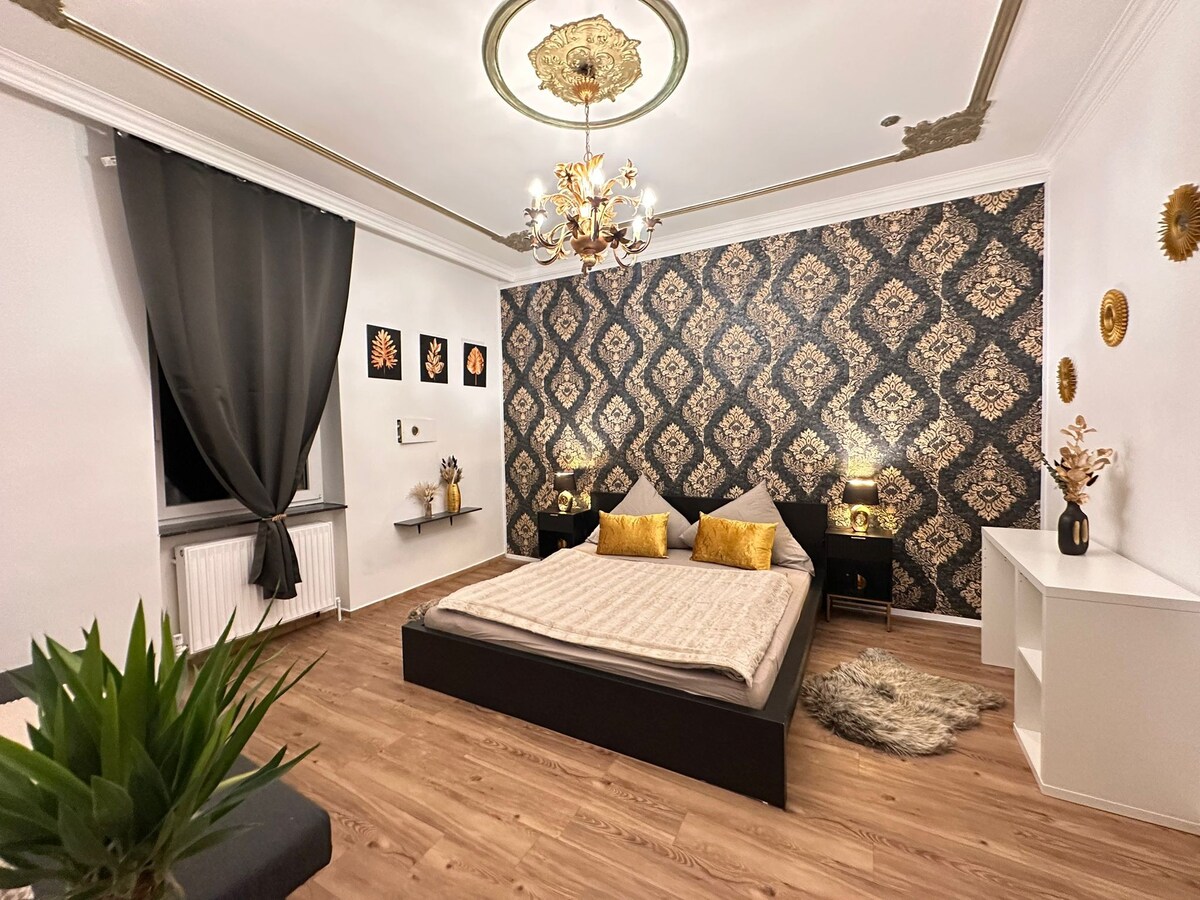Huset ligger bare ca 150 m fra landeveien. Penthouse-leiligheten ble kjærlig renovert av oss og omgjort til din personlige urbane jungel ved hjelp av en rekke grønne planter. Leiligheten ligger i 5. etasje, som kan nås med heis, og strekker seg over hele loftsetasjen (85 kvm) + 2 separate balkonger (delvis overbygget). Nyt den uforstyrrede utsikten fra de romslige balkongene uten naboer eller forstyrrende innsyn.