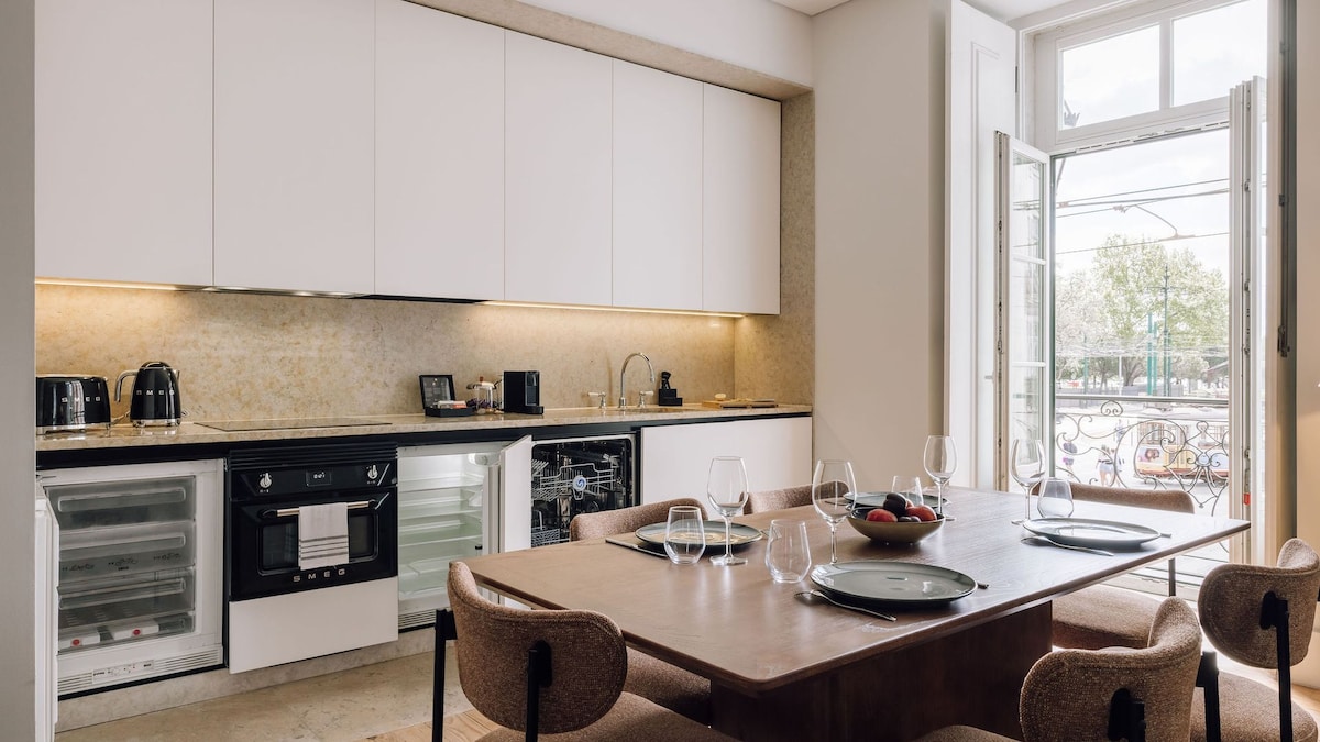 This meticulously renovated two-bedroom apartment sits just steps from the iconic Praça das Flores—widely considered Lisbon’s most charming square. Perfectly positioned between the curated boutiques, wine bars, and antique shops of Principe Real and the historic grandeur of the Parliament, it blends authentic soul with modern essentials. With full AC and high-speed Wi-Fi (513 Mbps), it's a sophisticated home base for families and couples alike.
