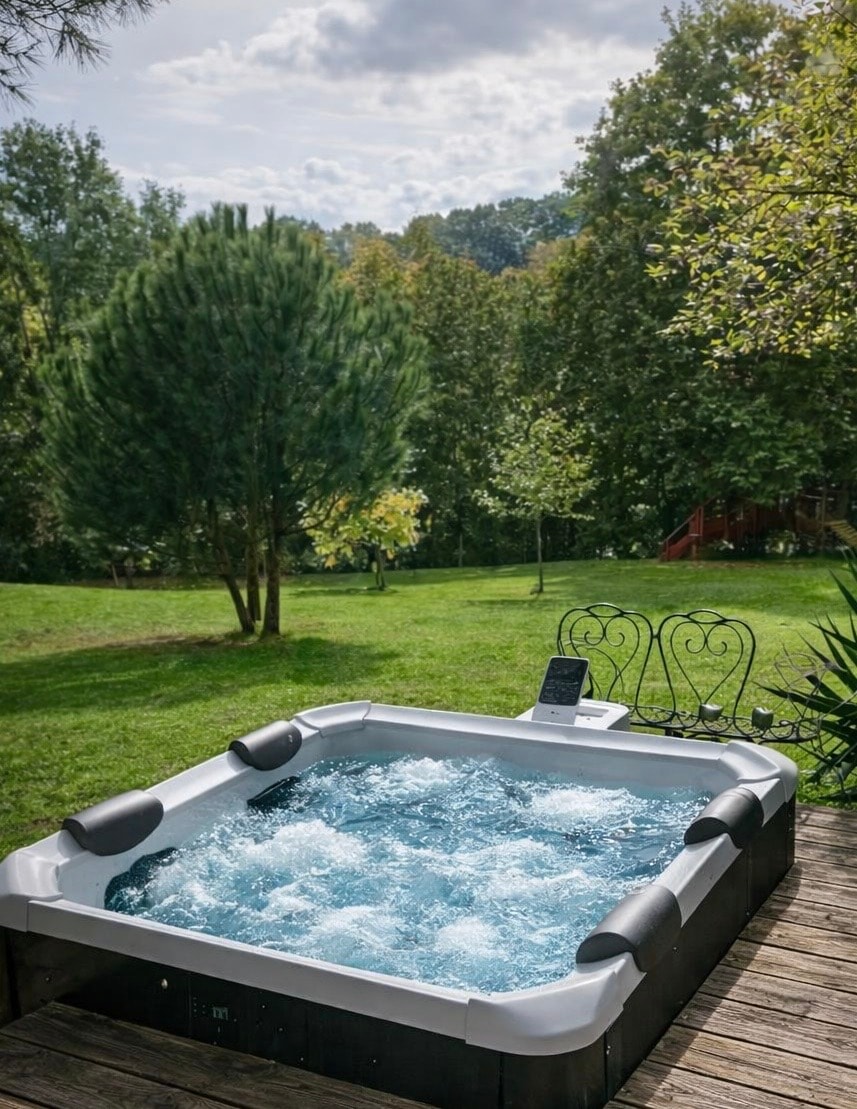 Hus med basseng og innendørs spa