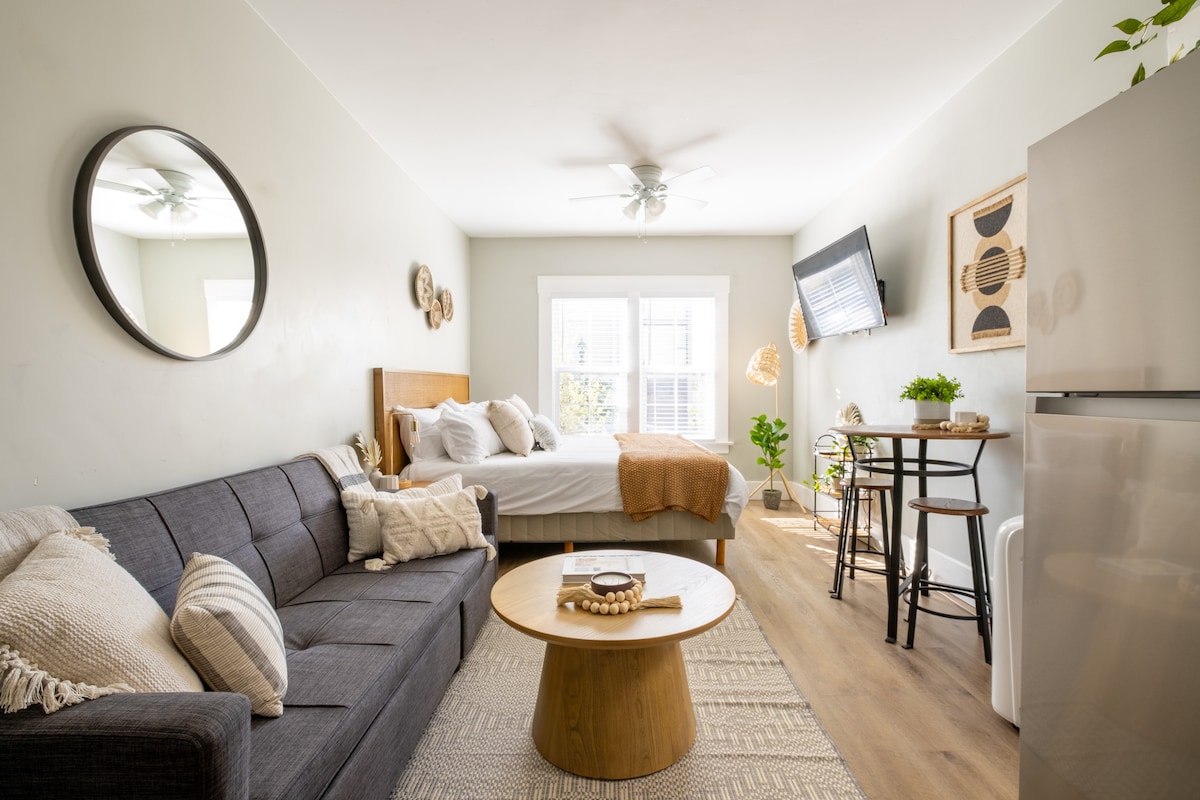 Bestill denne spektakulære moderne loftsleiligheten med 25 fots tak og utsikt! Loftet ligger i et område med en spasertur på 9,8/10 og er kjent for å ha de beste restaurantene, barene ogbutikkene. Enheten er nylig oppusset og omhyggelig designet med lyse vinduer, moderne luksusmøbler og et daglig spa-inspirert bad. Bare noen skritt fra vannkanten bestemmer du deg for om du vil nyte cocktailer og mat i nattelivet eller slappe av hele dagen ved å gå langs havnen. Gratis parkeringsplass med tilgang til alle.