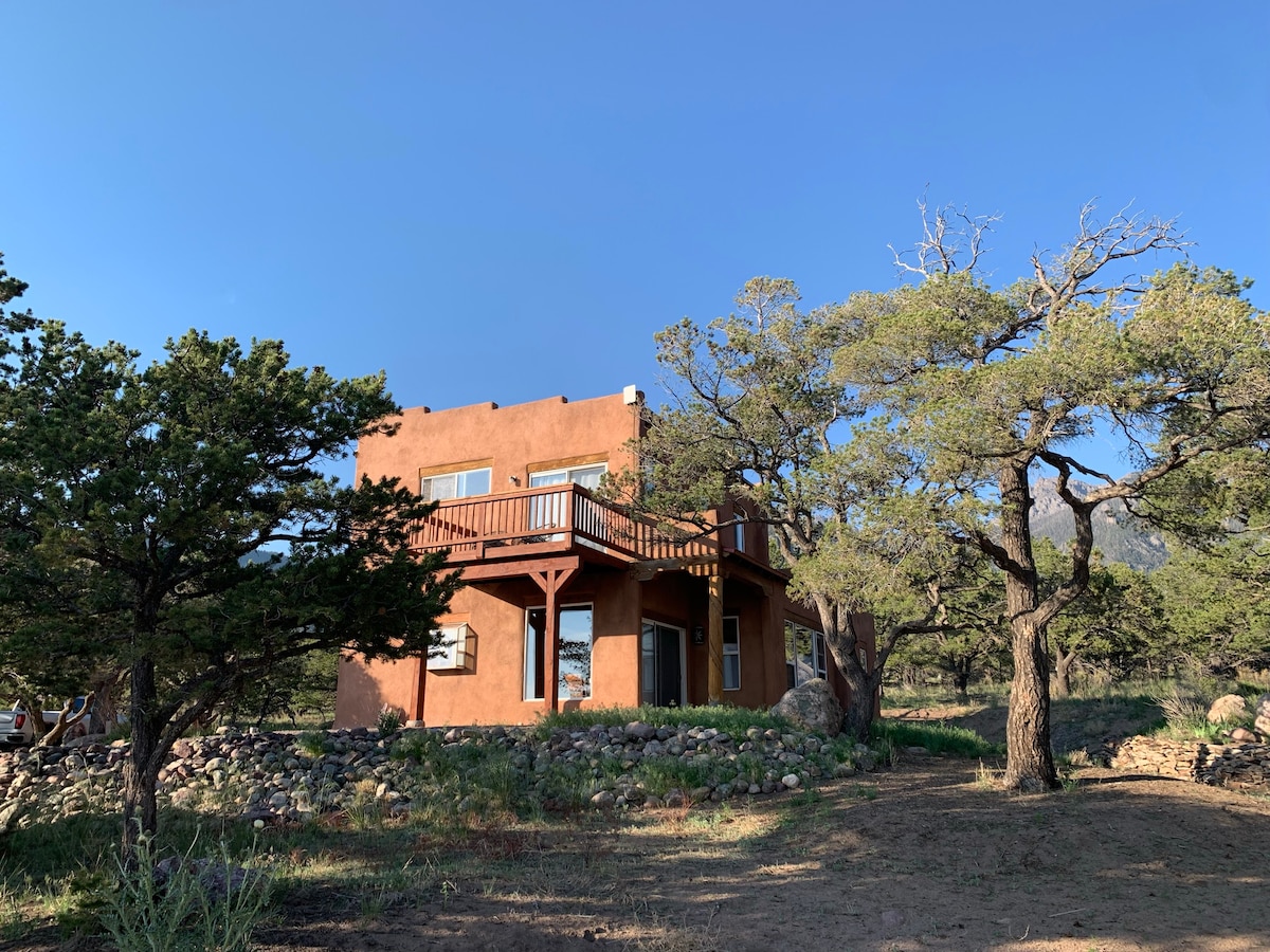 «Casa Vida» ligger i Crestone, CO. Gjenopprett roen i vårt komfortabelt utnevnte hjem i sørvestlig stil med tre soverom og to bad, som ligger to miles fra Crestone sentrum (Baca Grande Chalet I). Nyt morgenkaffen eller kveldsaperitiffene på terrassen med fantastisk utsikt over Sangre de Cristo-fjellene og «ned i dalen». Utmerket stjernekikking om kvelden. Hjemmet ligger på 1,25 hektar uten tilstøtende hjem. Se det lokale dyrelivet passere – kaniner, fugler, muldyr og kanskje til og med en og en bjørn.