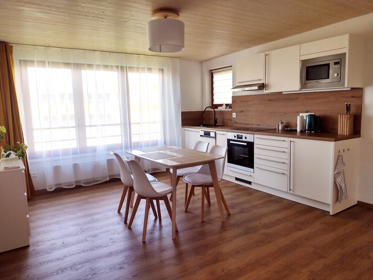 !!! České Budějovice - 90minutes by car from Prague !!! Cosy and light attic 110m2 with a veranda and parking space, situated in a residential area, 5 minutes walk to city center. You'll find here peace and quiet. Most suitable for families and couples. Parking: There's a dimension limit of cars that can fit in. Most of passenger cars are ok. It is best to let me know your car type. The building has no elevator. Exact address: tř. 28. října 17, České Budějovice, 37001