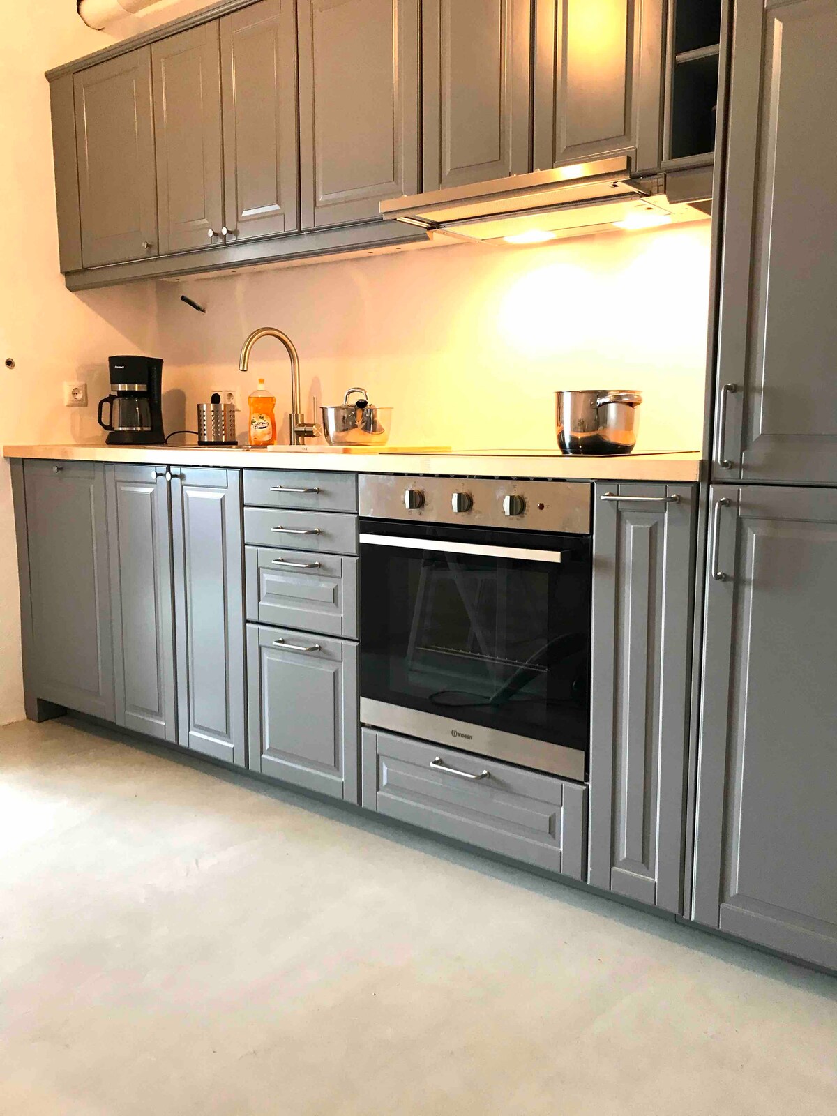 Kykladisk hus med vaskemaskin og tørketrommel