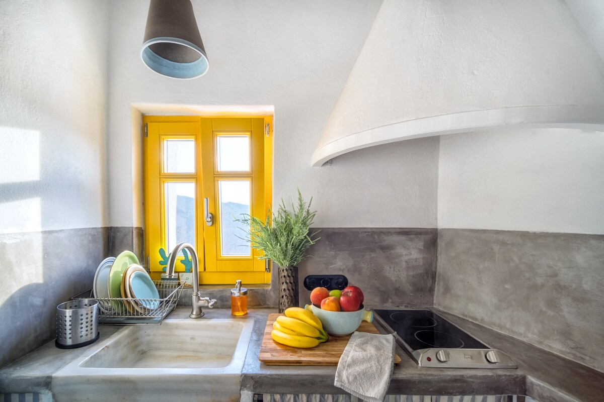 Huset mitt er et gammelt, lite hus i to etasjer med tradisjonell kykladisk arkitektur, renovert i 2019, kilt inn i smugene i den gamle og godt bevarte hovedstaden på Serifos-øya, kalt Chora. På grunn av topografien og det komplekse nettverket av smale smug, er det ingen kjøretøy tillatt, bare muldyr. Dette gjør det til et ideelt sted for gjester som setter pris på enkelhet og autentisitet, kombinert med ro og en fantastisk panoramautsikt over Egeerhavet, unna den støyende havnen i Livadi.