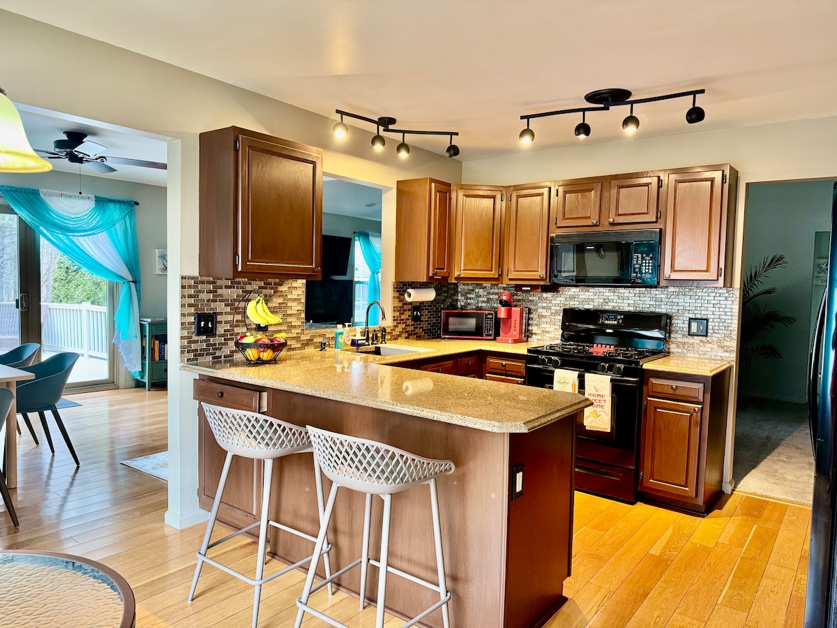 Velkommen til The Ferguson House, ditt moderne og koselige hjem hjemmefra i nærheten av Plymouth sentrum! Dette totalrenoverte hjemmet med fire soverom og to bad ligger bare 1,6 km fra sentrum og minutter fra I-275, og tilbyr den perfekte blandingen av komfort, stil og bekvemmelighet. Nyt den fredelige beliggenheten overfor en privat park, slapp av i boblebadet eller slapp av i ett av to romslige stuer som er designet for både avslapning og underholdning. 🚶♀️ 1,6 km til Plymouth sentrum 🚗 20 min til Ann Arbor l 30 min til Detroit