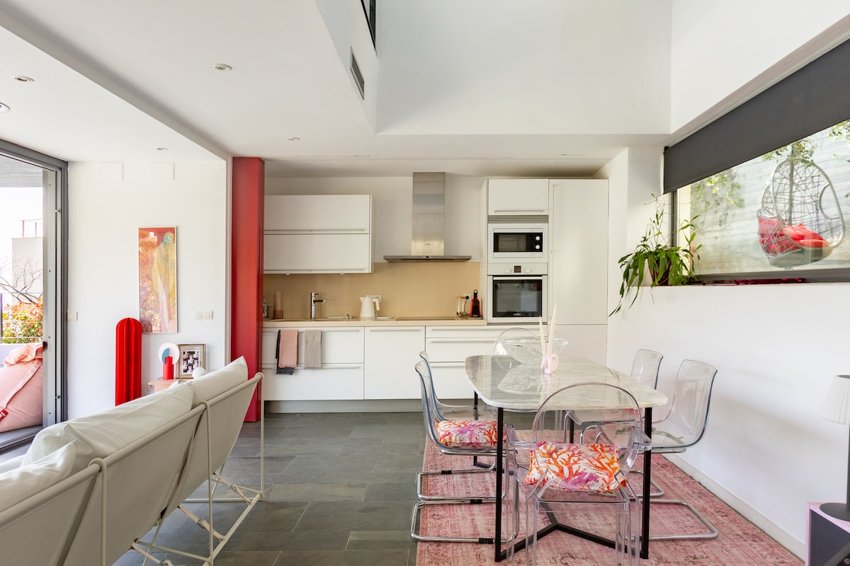 Koselig leilighet med basseng og i nærheten av de flotte strendene i Llançà, ideell for familier og par som leter etter dager med hvile og kontakt med havet, spasere langs Camino de Ronda og nyt det idylliske miljøet på Costa Brava. Ligger i et rolig område, i nærheten av strendene Les Tonyines og La Farella, til fots mindre enn 10' og i nærheten av butikkene i villaen. Selv om det er mer fjernt, kan du også ta en spasertur for å komme deg til havneområdet, med restauranter og heladerias.