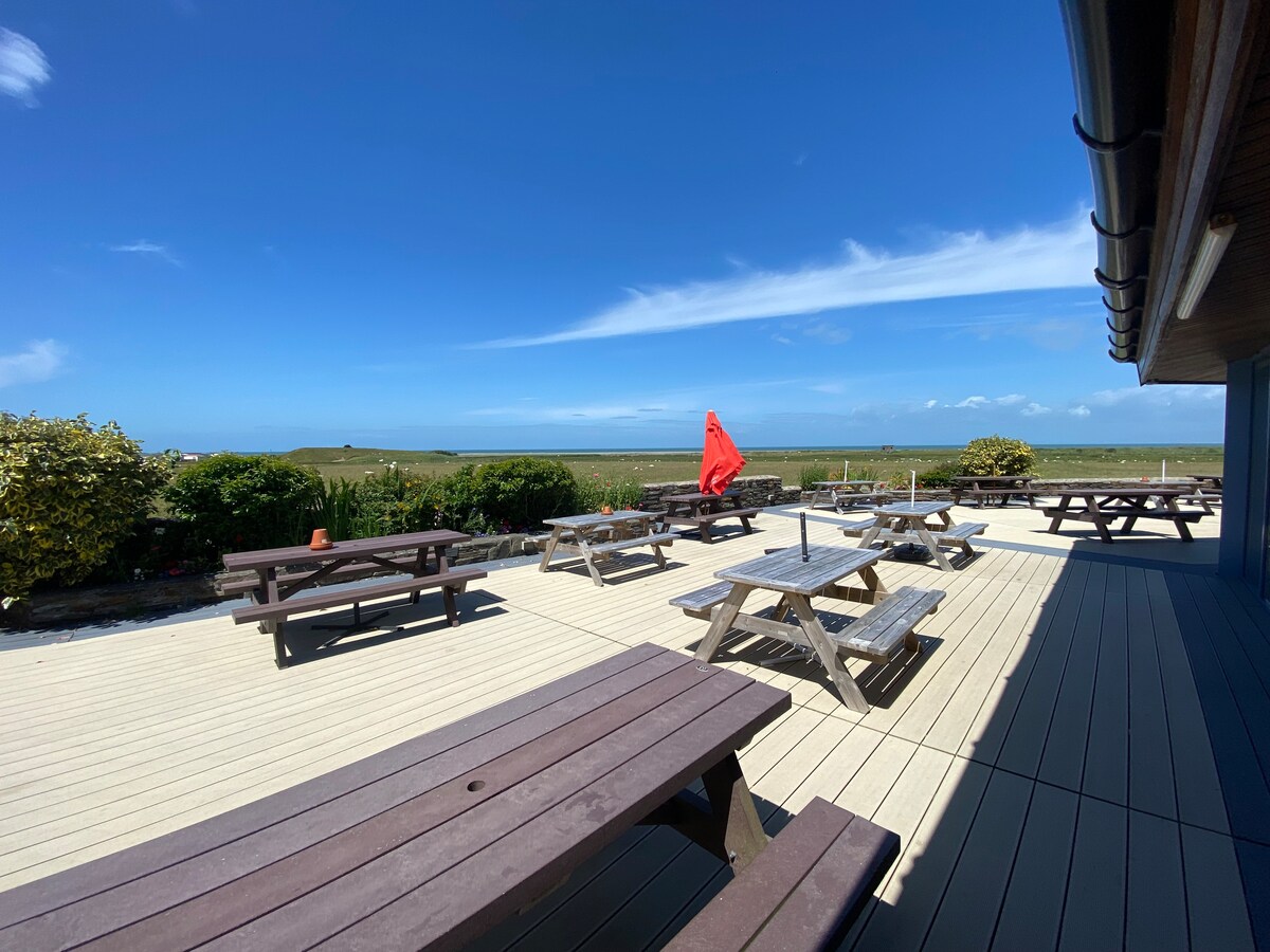 Ta med hele familien til denne kjæledyrsvennlige ferieboligen, med mye plass til alle. Cae Mawr ligger på toppen av Mynydd-fjellet og har utsikt over Nefyn- og Porthdinllaen-buktene, med den berømte Ty Coch Inn (kåret til den tredje beste strandbaren i verden) 10–15 minutter unna med bil. Du kan gå lenger opp i fjellet eller gå ned til den lokale landsbyen som har sin egen gyldne sandstrand – perfekt for kajakkpadling, fisking eller bare avslapning. Strandhytte avhengig av tilgjengelighet – vennligst sjekk.
