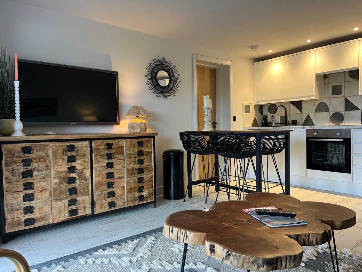 Ideelt plassert på et rolig sted, bare fem minutters gange fra stranden og landsbysentrum. Stilig oppusset leilighet med sjøutsikt som tilbyr en lys, åpen stue/kjøkken, 2 dobbeltsenger og dusjrom. Lite uteplassområde foran. Parkering utenfor leiligheten, og alt du trenger ligger innenfor gangavstand. Bare pakk ut, slapp av og nyt! Vi ønsker familier, par og hunder velkommen. Beklager, men røyking er ikke tillatt. Alle håndklær og sengetøy er inkludert.