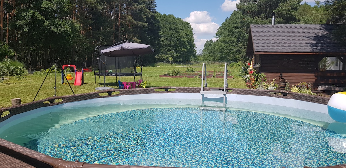 Et trehus med peis i et rolig område, omgitt av trær og en dam som skaper en unik atmosfære. Ved siden av hytta er det et sted for festing og et bål. Huset har to soverom og en åpen stue med kjøkkenkrok. Nede og oppe i hytta er det to store terrasser. Hytta er utstyrt med: vaskemaskin, komfyr med stekeovn, TV, trådløst nettverk, mikrobølgeovn og kjøleskap. Ved temperaturer under null er boblebadet stengt, HUSNUMMER 5A, pris for seks personer, boblebad betales i tillegg PLN 150 per natt.