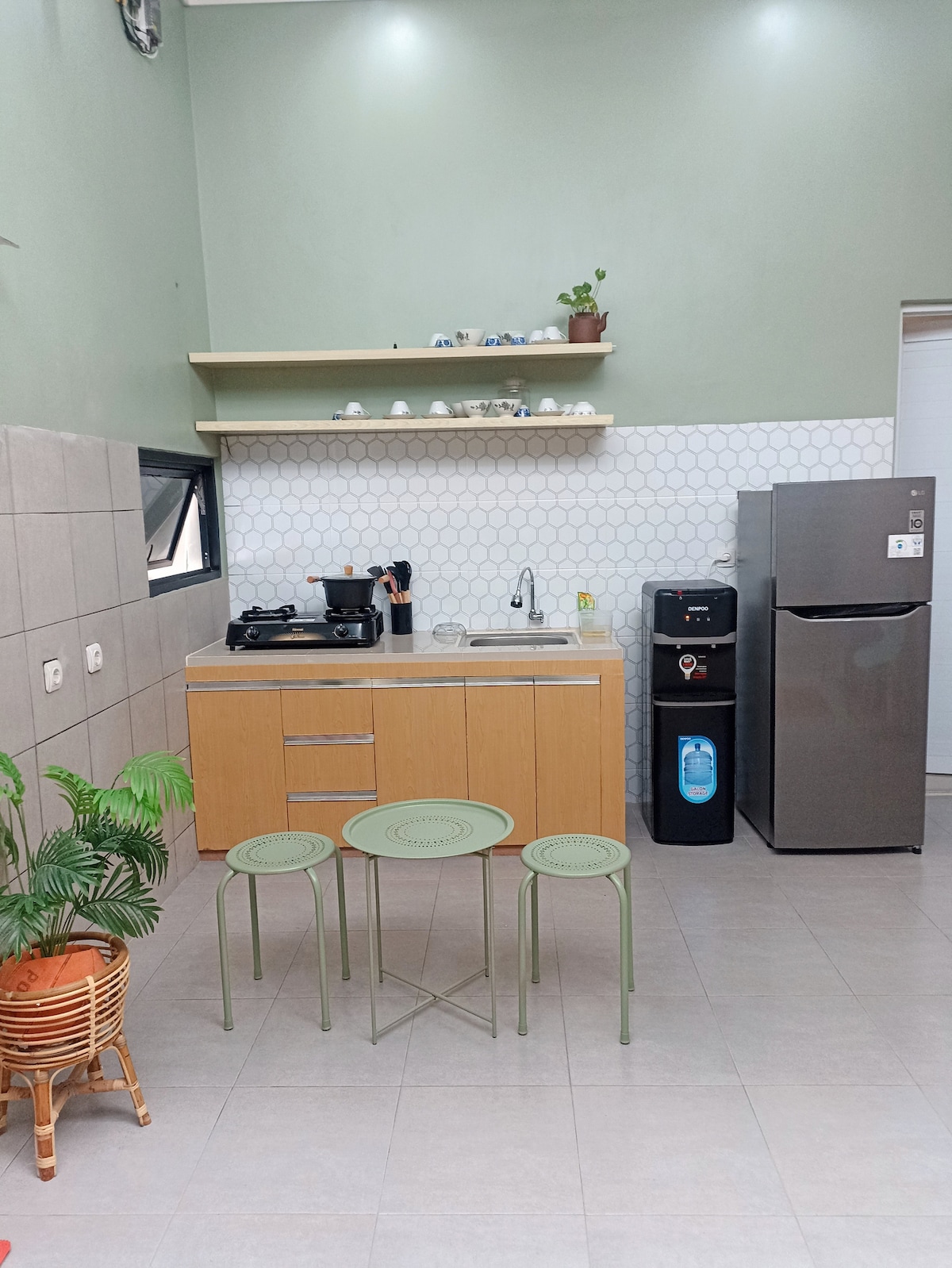 SUPER KOMPLETT FASILITETER TILSVARENDE HOTELLET: - 1 romslig hus 72 m2 - to soverom - Garasjen kan være for to biler. - 60 x 60 cm granittgulv - stolbord på verandaen - king size-seng på 180 x 200 cm, komplett med sengetøy. - full klimaanlegg. - skap med tre dører - sidebord - sovelampe. - Bad med dusj og toalett - familierom med sovesofa, glassbord og vifte - 43 tommers LED-TV - flott kjøkken. - kjøleskap med to dører - Glatt betongvei. - Døgnåpen sikkerhet - billig safe, komfortabel rengjøring. - Strategisk beliggenhet i Indramayu sentrum