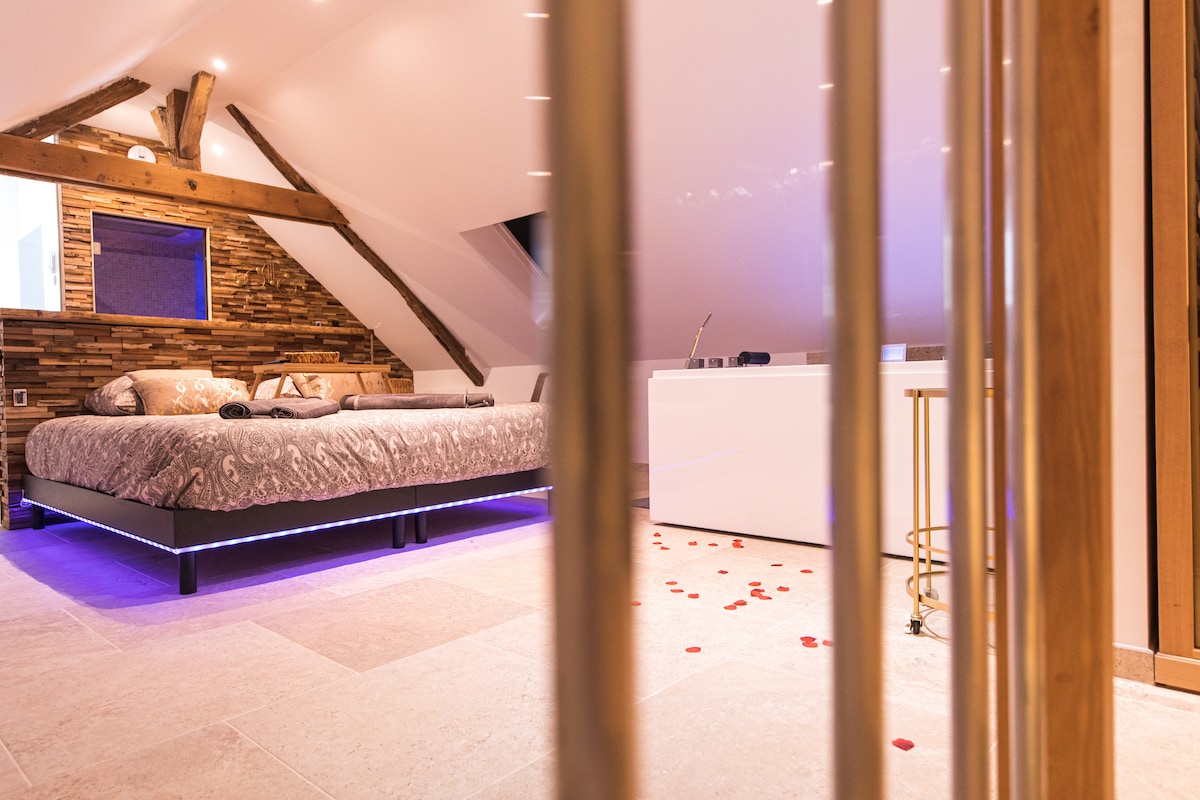 Hus laget for par som ønsker å komme og slappe av sammen i et avslappende område med privat boblebad og badstue. Slapp av i denne unike og rolige boligen, like utenfor sentrum av Châteaudun. Kingsize-seng, sengetøy, håndklær, badekåper og tøfler følger med. Utstyrt kjøkken og tilkoblet TV (Netflix fra kontoen din). Spesielle forespørsler (champagne, dekorasjon, stearinlys) er gjenstand for en ekstra kostnad, vennligst gi oss beskjed på forhånd.