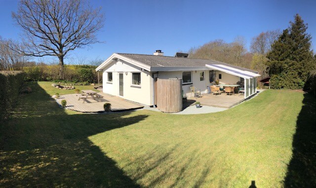 Hus med havutsikt i landlig idyll med nydelig hage. Bli vekket av hanegaler og se kyrne beite. 20 min til Åbenrå/Sønderborg 30 min til Flensburg, Turgåing/fotturer og sykling i naturen, vakre omgivelser. Golf. Flotte muligheter for fiske. I januar/februar 2026 vil stuen endre seg litt. Stuen er delt inn i to rom. En stue og et rom.Arbeidsplassen flyttes til rommet, og en seng kommer.