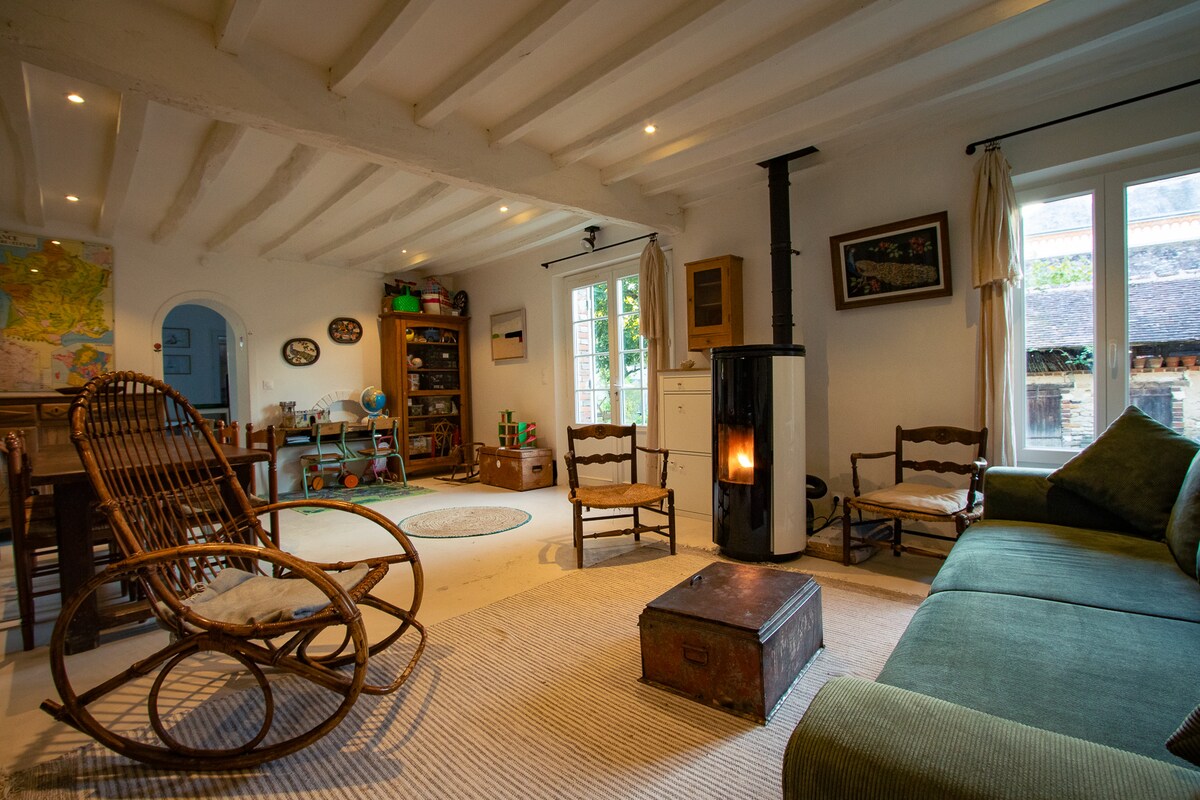 Sjarmerende hus i hjertet av en skyggefull og inngjerdet park (3600 m²). Ideelt for familier eller for opphold med venner (4 til 5 personer). Sengetøy (laken, dynetrekk og putevar) følger med. Håndklær (håndklær og hansker) følger med. Barneseng på forespørsel. Kjæledyr tillatt (katter og små hunder). Huset ligger 30 minutter fra Orléans og 30 minutter fra Montargis.