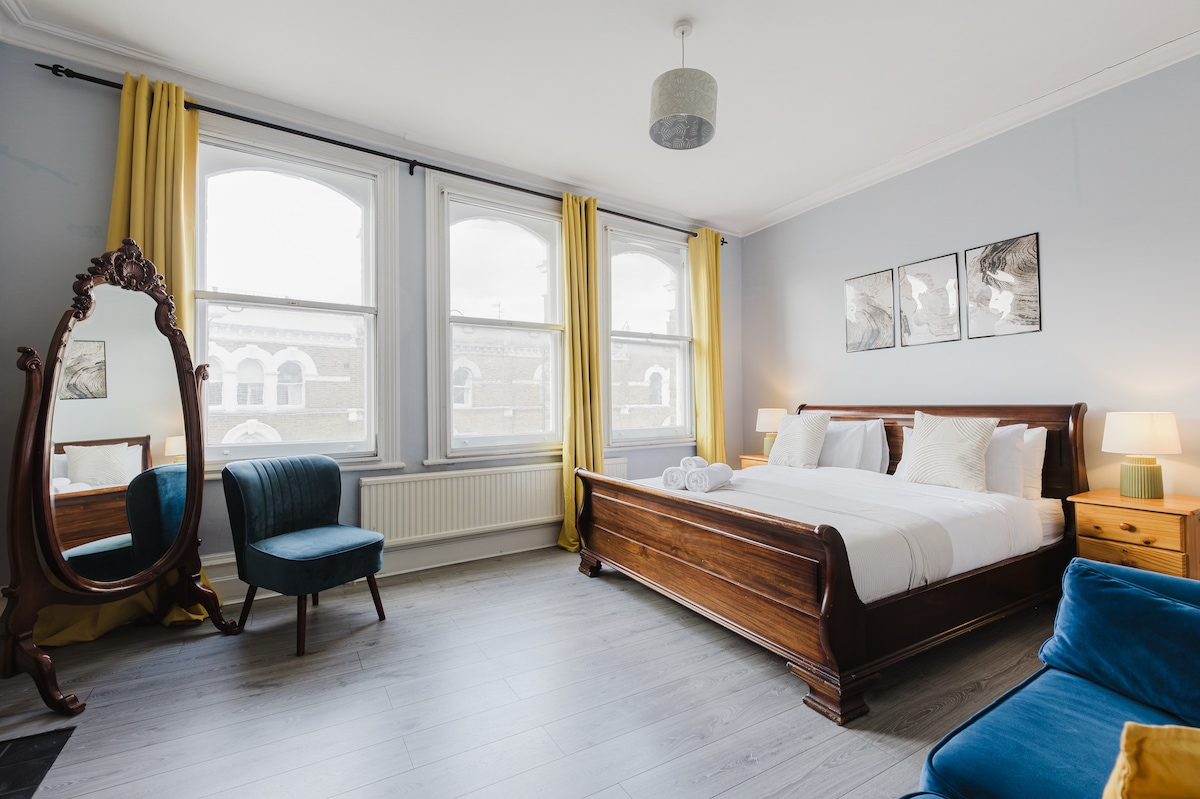 ****MERK: EIENDOMMEN ER UNDERLAGT AIRBNBS BESTILLINGSGRENSE PÅ 90 NETTER I LONDON, SÅ DEN VIL FORSVINNE FRA UTLEIE NÅR 90 DAGER ER BESTILT**** Denne leiligheten, som opptar hele første etasje i et vakkert georgiansk hus, ligger to minutter fra all kollektivtransport og er omgitt av restauranter, butikker og kaféer i et av Londons mest ikoniske distrikter. Ulastelig moderne oppussing gjennom hele leiligheten, med stor stue, fantastisk bad og stille soverom med kingsize-seng.