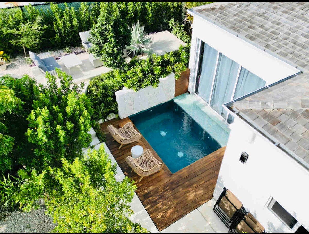 Fredelig villa nær Grace Bay Beach 🌴 Reis til denne rolige villaen bare minutter fra Grace Bay Beach og noen skritt fra Coco Bistro. Nyt et privat basseng, soverom med klimaanlegg, et fullt utstyrt kjøkken og en utendørsgrill for avslappende måltider. Slapp av med strandhåndklær og stoler, hold kontakten med sterk trådløs nettverkstilkobling og nyt de frodige tropiske omgivelsene. Den perfekte blandingen av komfort, bekvemmelighet og ro for ferien din! 🌴 12 % offentlig skatt er inkludert i den oppførte prisen.