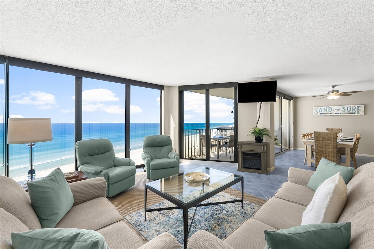 Fantastisk enhet i 7. etasje STRANDFRONT, smakfullt oppusset, nye møbler og apparater, med stor balkong for å nyte den BESTE SOLEN I LANDET! Perfekt BELIGGENHET på den «rolige enden» av PCB, som kombinerer et avslappet miljø, mens det er 5–10 minutters kjøring fra alle de viktigste byaktivitetene, inkludert shopping, restauranter og familieunderholdning. Regency Towers belaster et engangsgebyr på 40 USD per reservasjon for én parkeringstillatelse og bassengarmbånd. Må være minst 21 år for å leie.