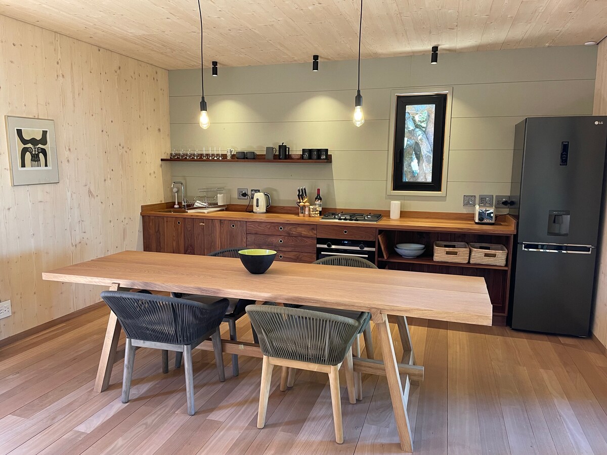 Dette er en unik «hytte i skogen» i tretopphusstil, som ligger høyt oppeis på en eiendom som utgjør en del av Table Mountain Reserve, med utsikt over verdensarvsstedet «Orange Kloof», som ligger på baksiden av Table Mountain-reservatet. Til tross for at det ligger langt unna, ligger det bare syv minutter fra Houtbays sentrum og tolv minutter fra Constantia kjøpesenter. Hjemmet har umiddelbar tilgang til turstier og Vlakenberg-tursti. Alle soverommene har fantastisk utsikt mot fjellkjeder.