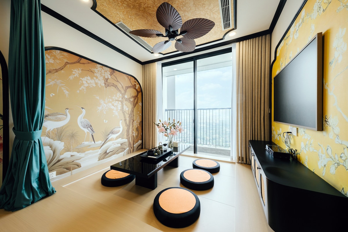 Denne 82 m² store leiligheten ligger bortgjemt i Hanoj s franske kvarter, og tilbyr en elegant blanding av grøntområder og minimalistisk design. Stedet er inspirert av japansk estetikk, og flyter mykt fra rom til rom, fylt med naturlig lys, myke teksturer og beroligende toner. En romslig balkong med frodige planter inviterer til sakte morgener og fredelige kvelder. Hver detalj er bevisst – et rolig tilfluktssted i byen.