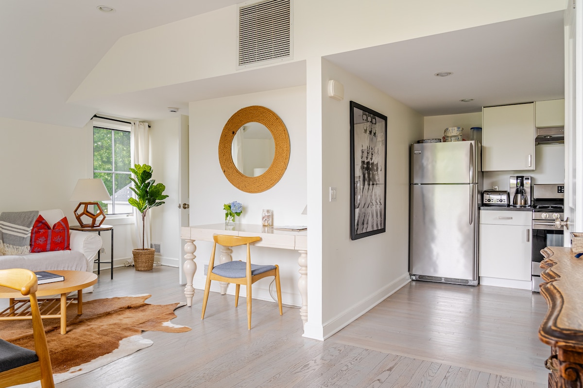 Nyt tiden i denne nydelige studioleiligheten i hjertet av Rowayton, en sjarmerende New England-landsby ved sjøen, avgrenset på den ene siden av Long Island-sundet og den andre av en tidevanns innløp. Basert i det sørvestlige hjørnet av CT, er vi bare ett minutts gange til to separate og avsidesliggende strender, samt to private, velholdte parker. Flotte fasiliteter i byen, inkludert tennis, seiling, utendørs yoga, soling, pluss fine restauranter. Fotgjenger- og hundevennlig by. Du trenger ikke engang bil mens du er her.