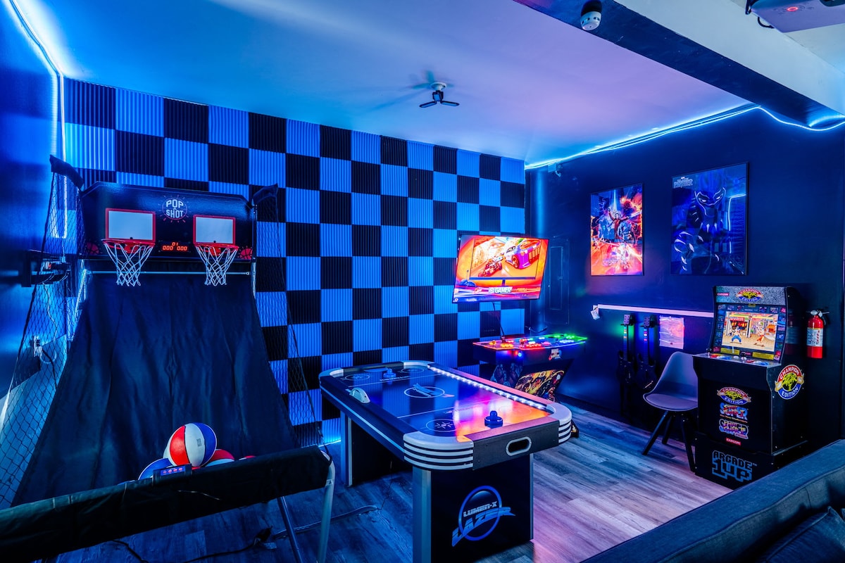 Welcome to our newly renovated modern 6 bedroom retreat featuring a private heated indoor pool, perfect for families and group getaways year round. This spacious home offers high ceilings, an open floor plan, and stylish decor throughout. Enjoy the game room with ping pong, foosball, darts, and giant Connect 4, gather around the large dining area, cook in the beautiful kitchen or relax outdoors surrounded by nature. Designed for comfort, fun, and memorable stays with plenty of space for everyone