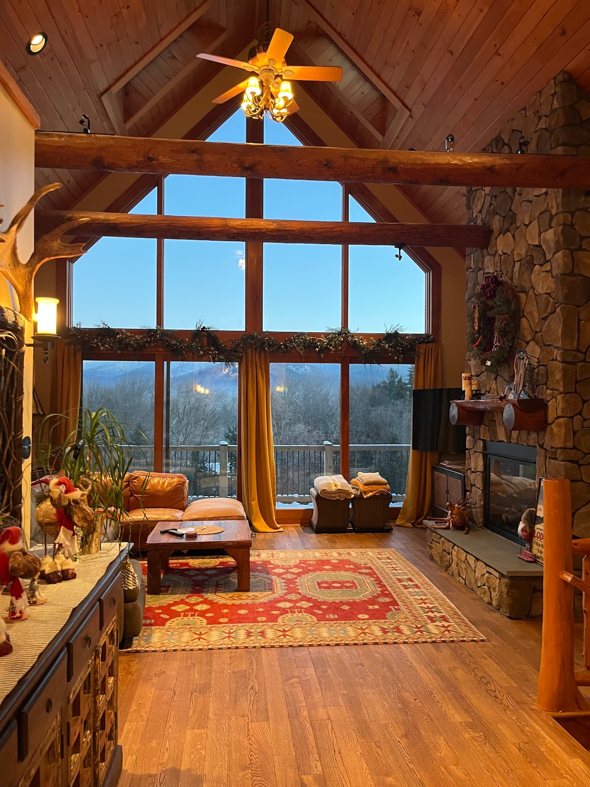 Velkommen til Mountainside Manor! Et nytt (desember 2024) feriested med fem soverom og 4,5 bad som blander moderne luksus med rustikk sjarm, ligger i South Peak på Loon Mountain, bare minutter fra bakkene, elven og stiene. ★Nøkkelfunksjoner★ ✔ To stuer, to suiter med kingsize-senger, kontor og vaskerom. ✔ Mørkingsgardiner ✔ Sonos-lydsystem, smart-TV-er, arkader, PS5 og bordtennis ✔ Profesjonelt kjøkken, kaffebar og bar. ✔ Boblebad, bålpanne og grill. ✔ To elbilladere og generator med automatisk start. ✔ Eierens stolheis, skiløype og skyttel