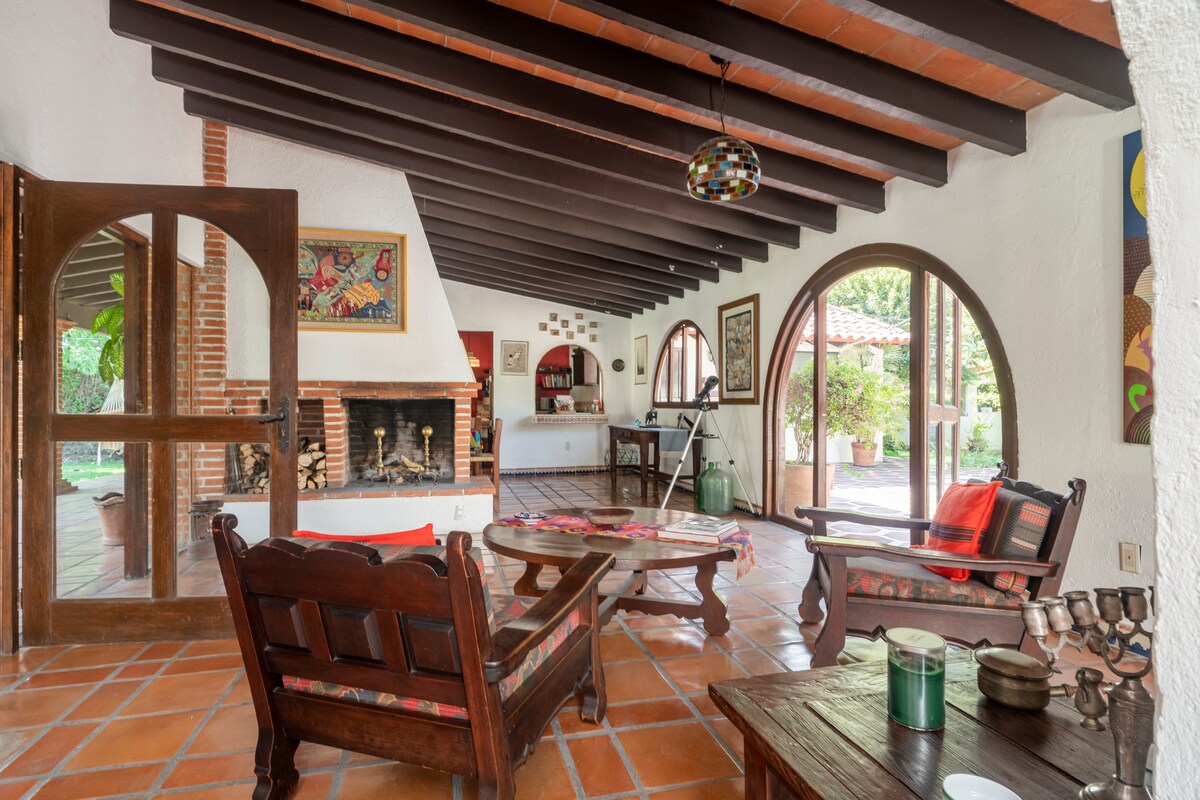 Huset ligger i en vakker dal i Tepozteco-fjellene. Beliggenheten er fredelig, stille og trygg. Arkitekturen minner om nordafrikanske ørkenhus, og tilbyr komfortable områder med private områder som passer for to par eller én familie. Stuen og spisestuen åpner mot hagen. Alle nødvendige fasiliteter for matlaging og måltider er tilgjengelige. Enten du vil sove, slappe av, meditere, gå eller lese, er dette det perfekte stedet! Godt trådløst nettverk.