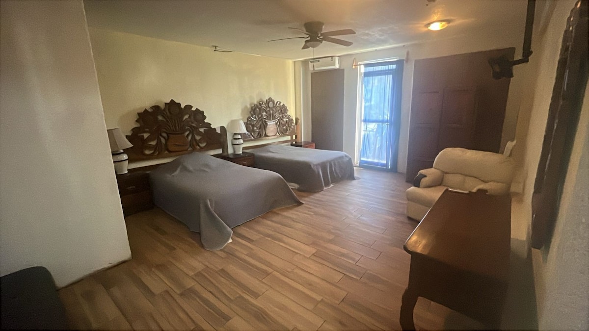 Komfortabelt og nytt studio for 2–4 personer i sentrum av Cabo, trygt område med privat parkering inne på eiendommen, noen kvartaler fra hovedboulevarden hvor butikker, restauranter, La Marina og nattklubber ligger. En 15-minutters spasertur (omtrent) til bukten hvor du kan svømme og nyte den vakre stranden og restaurantene. Kollektivtransport to kvartaler unna. Et godt sted å nyte all magien Cabo har for deg.