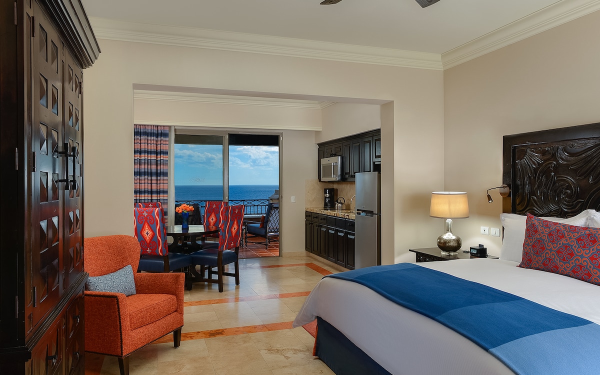 Reis til denne luksuriøse studioleiligheten på Villa La Valencia, hjemsted for Cabos lengste lazy river! Slapp av i luksussuiten med et spa-inspirert bad, kjøkkenkrok og privat terrasse. Nyt evighetsbassenget ved stranden med utsikt over Californiabukten, fire jacuzzi og fine restauranter på stedet. Beliggende på Golden Corridor, er du bare minutter fra både Cabo San Lucas og San José. Perfekt for par eller små familier som ønsker en 5-stjerners ferie.