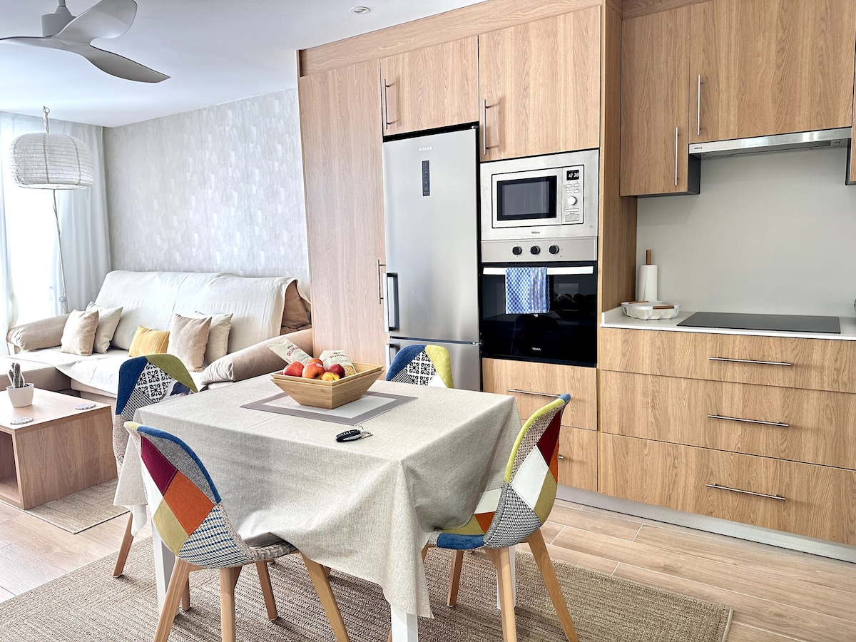 Vakkert renovert leilighet med to soverom i hjertet av Los Cristianos: fem minutters gange til stranden og i sentrum av all kommersiell aktivitet. Fullt utstyrt for en flott ferie: hovedsoverom med dobbeltseng, andre soverom med to enkeltsenger, gratis trådløst nettverk, smart Samsung-TV, klimaanlegg (både soverom og stue), safe, kjøkkenutstyr. Badet er utstyrt med vaskemaskin, hårføner, håndklær og matter. Rent sengetøy på soverommene.