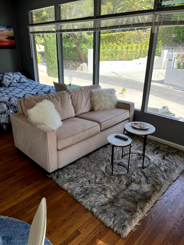 Vintage moderne møbler, planter og kunstfylt bakketopp Los Feliz /Silver Lake privat gjestehus nede med spektakulær utsikt over solnedgangen. Privat bakgård og terrasse. 730 kvm: 2 store soverom med queensize-senger forankret rundt en stor stue (ca. 200 kvm hver) pluss 3/4 bad og klesvask inne. raskt TRÅDLØST NETTVERK. Aeron stol Franklin Hills er en eksklusiv bakketopp i Los Feliz +Silverlake. Området er hviskende stille og mye gateparkering. 3 miles fra Hollywood 5 miles fra sentrum