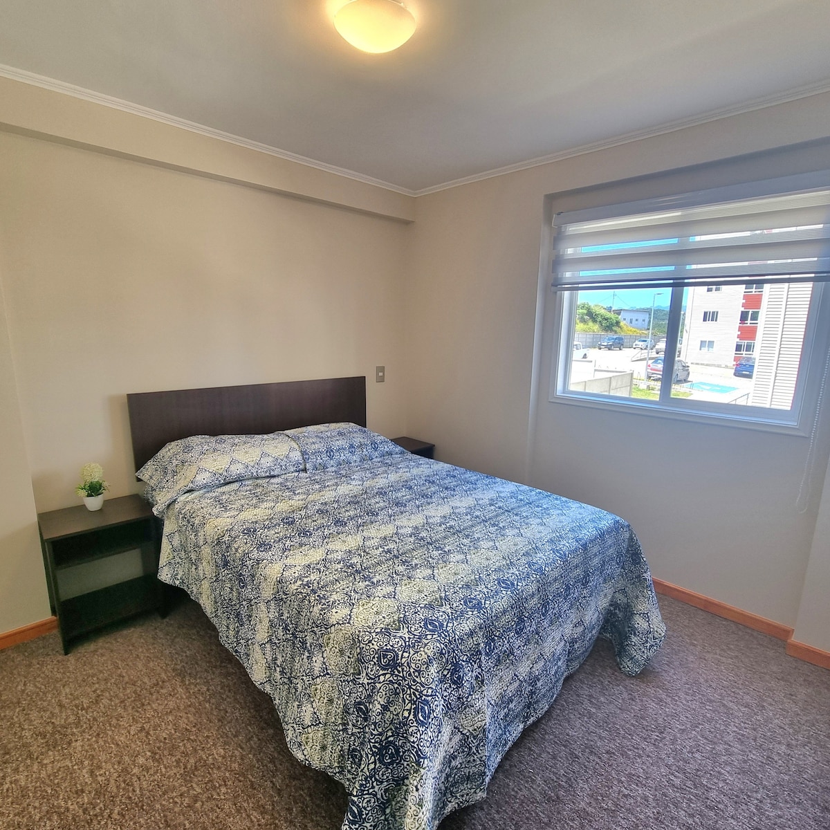 Full leilighet utstyrt for 4 personer, som ligger i en ny bygning, foran Llanquihue-sjøen og noen skritt fra forskjellige restauranter. Leiligheten har alt du trenger for et hyggelig opphold, med tanke på én kingsize-seng og to enkeltsenger (utskiftbar seng). Leiligheten har privat parkering, som ligger i T-banen i samme bygning. Bygningen har et vaskerom, privat hage og et stort temperert basseng, tilgjengelig for leilighetsgjester.