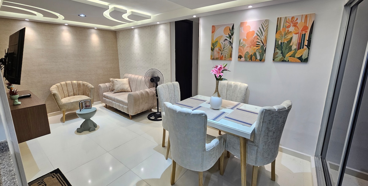 Fullt møblert leilighet med aircondition i hovedrommet, internett på 300 megabit, privat parkering inne i bygningen, med den beste beliggenheten i byen. På forsiden finner du en farmatodo, macko-butikker, vellykkede varehus og på den ene siden D1. Veldig nær finner du også Ventura Plaza kjøpesenter, klubb tennis, malecón og restauranter. Settet har basseng, treningsstudio, lekeområde for barn og en terrasse med panoramautsikt.