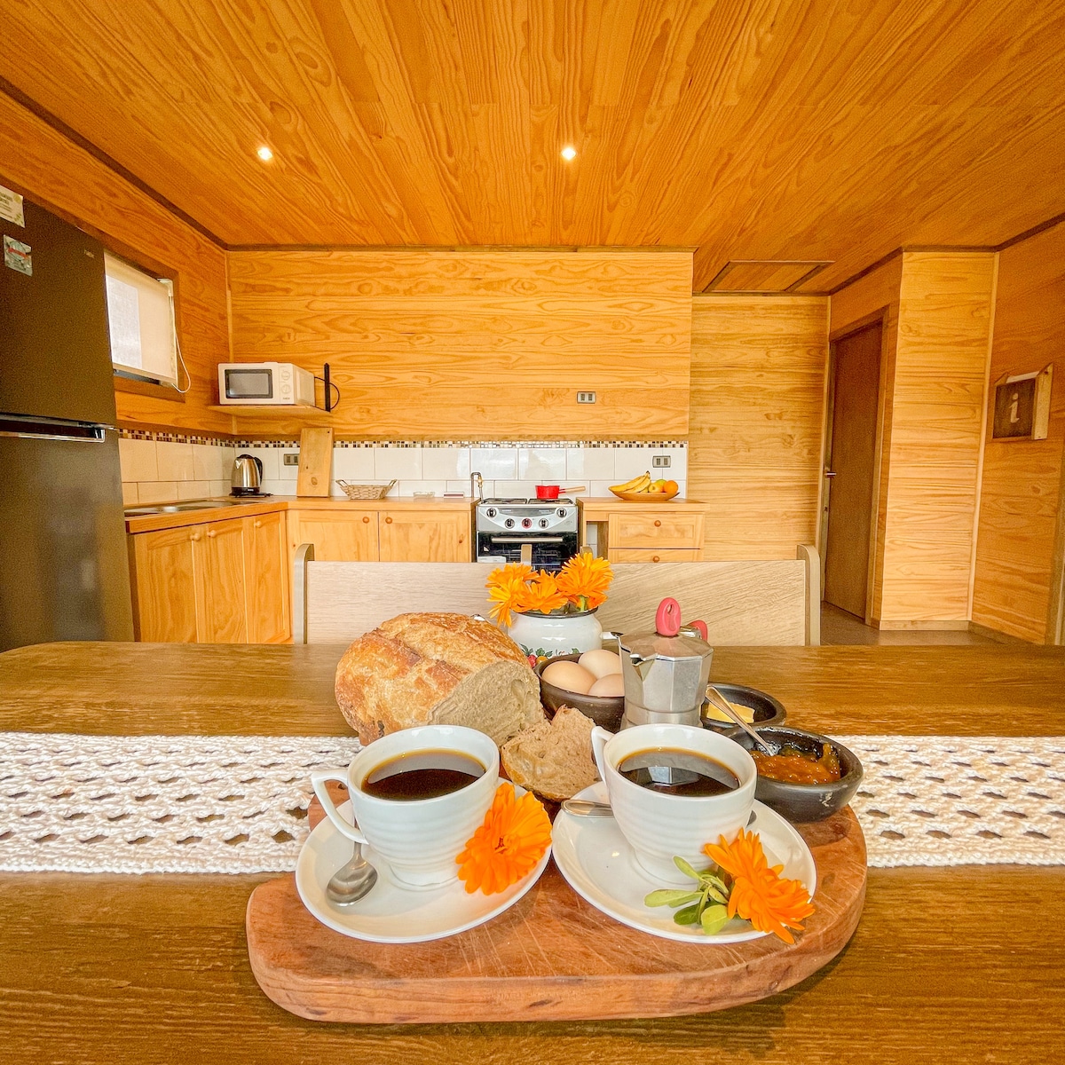 Unnslipp støyen og kom i kontakt med naturen på Eco Cabañas Peumayen – Chiscaihue. Omgitt av grønne enger og husdyr, tilbyr våre bærekraftige hytter et fredelig tilfluktssted i det sørlige Chile, i nærheten av Entre Lagos. Nyt den friske luften, livet på landet og et sted utformet for å hvile, slappe av og oppleve essensen av naturen i et koselig og bærekraftig miljø.