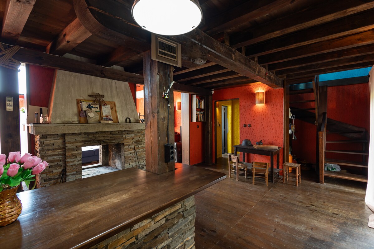 Huset er koselig, godt utstyrt og fullt av gode vibber. Villaen ligger mot en ganske panoramautsikt, og det er gode muligheter til å vandre, ri eller bare slappe av. På kalde dager kan du nyte et glass vin foran en ekte peis. En fantastisk hytte for å slappe av i naturen, hvor du kan se på den klare himmelen og solnedgangen. Hvis du elsker ro og natur, er dette det rette stedet for deg. Vær vår gjest, og la oss hjelpe deg med å nyte et herlig opphold i dette sjarmerende huset.