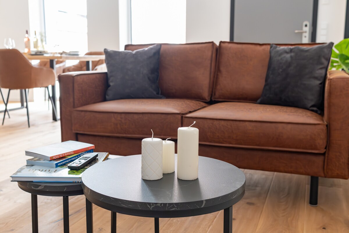 Helt nytt luksusloft 3 minutter fra Fulda Hbf – perfekt for familier og bedrifter! ✨ Hva venter på deg: Nøkkelfri inngang og gratis parkering. Raskt 1 GB trådløst fibernettverk Tre store smart-TV-er med Netflix, Disney+. Tre soverom, plass til opptil syv personer. Gulvvarme, LED-belysning Kaffemaskin, oppvaskmaskin, vannkoker. Vaskemaskin/tørketrommel/strykejern i kjelleren. Hårføner, nye håndklær og alle nødvendige basisartikler. Gratis flaskevann. 📍 Førsteklasses beliggenhet: hjertet av byen, gå til restauranter 💼 Valgfritt: Kontorfellesskap (separat bestilling og gebyr)