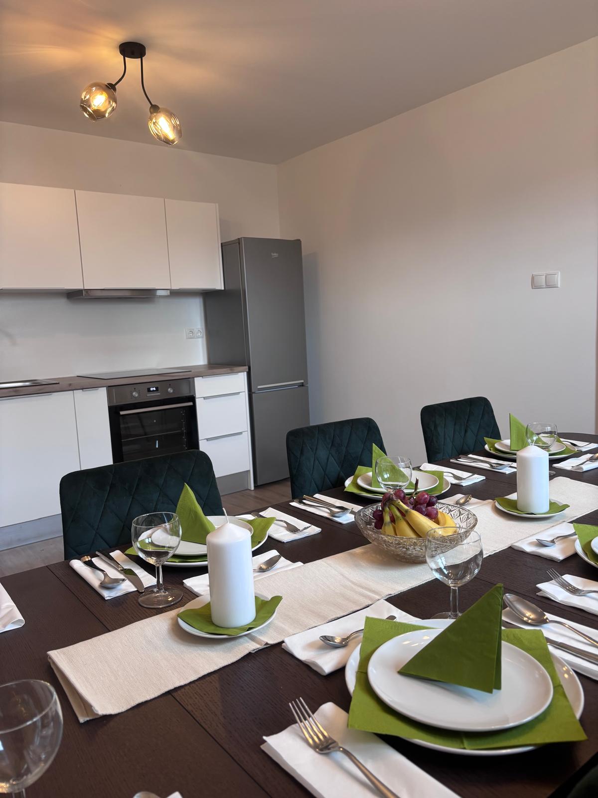 Romslig, godt utstyrt to-roms leilighet med balkong. Leiligheten ligger i første etasje i bygningen. Super beliggenhet. Stille, rolig beliggenhet, ny bygning, enkel tilgang til de største byene i Schlesien - Schlesisk stadion 19 minutter, Spodek (ved siden av MCK), Pyrzowice flyplass 45 minutter, PKP-stasjon 5 minutter med bil.
