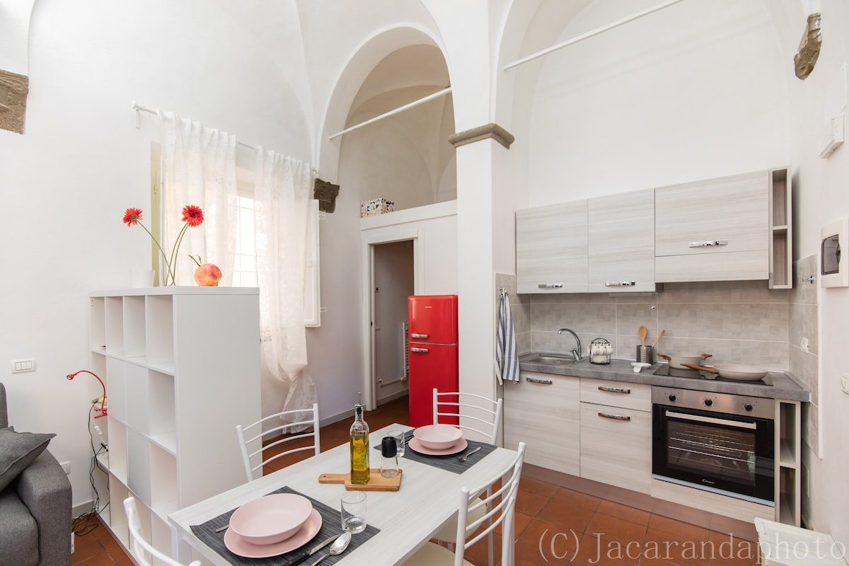 Leiligheten «Il Chiostro della Cattedrale» ligger i det historiske sentrum av Lucca, i en misunnelsesverdig posisjon: den ligger bare noen få meter unna San Martino-katedralen. Til tross for den sentrale beliggenheten er den lett tilgjengelig med kollektivtransport (togstasjonen ligger kun 500 meter unna). Hver morgen, når du går ut, blir du umiddelbart oppslukt av Luccas skjønnhet og historie: hvert hjørne av denne byen forteller en historie, og du kan ikke vente med å oppdage den!