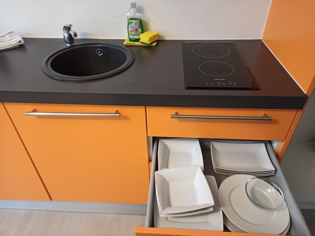 Innsjekking uten vert er mulig – slapp av i dette fredelige nye overnattingsstedet. Nyt ferier, smartarbeid eller en helgetur til det fulle. Inngangsparti, ett stue- og soveområde, ett bad, ett soverom, en koselig terrasse med stue for å slappe av. Parkering tilgjengelig. Trening med moderne apparater. Bussholdeplass til Lugano foran boligen. Flotte utflukter; Lugano-markedet Campione Morcote Como Market 20 minutter. Fox Town ti minutter. Arese Centro Commerciale 40 minutter
