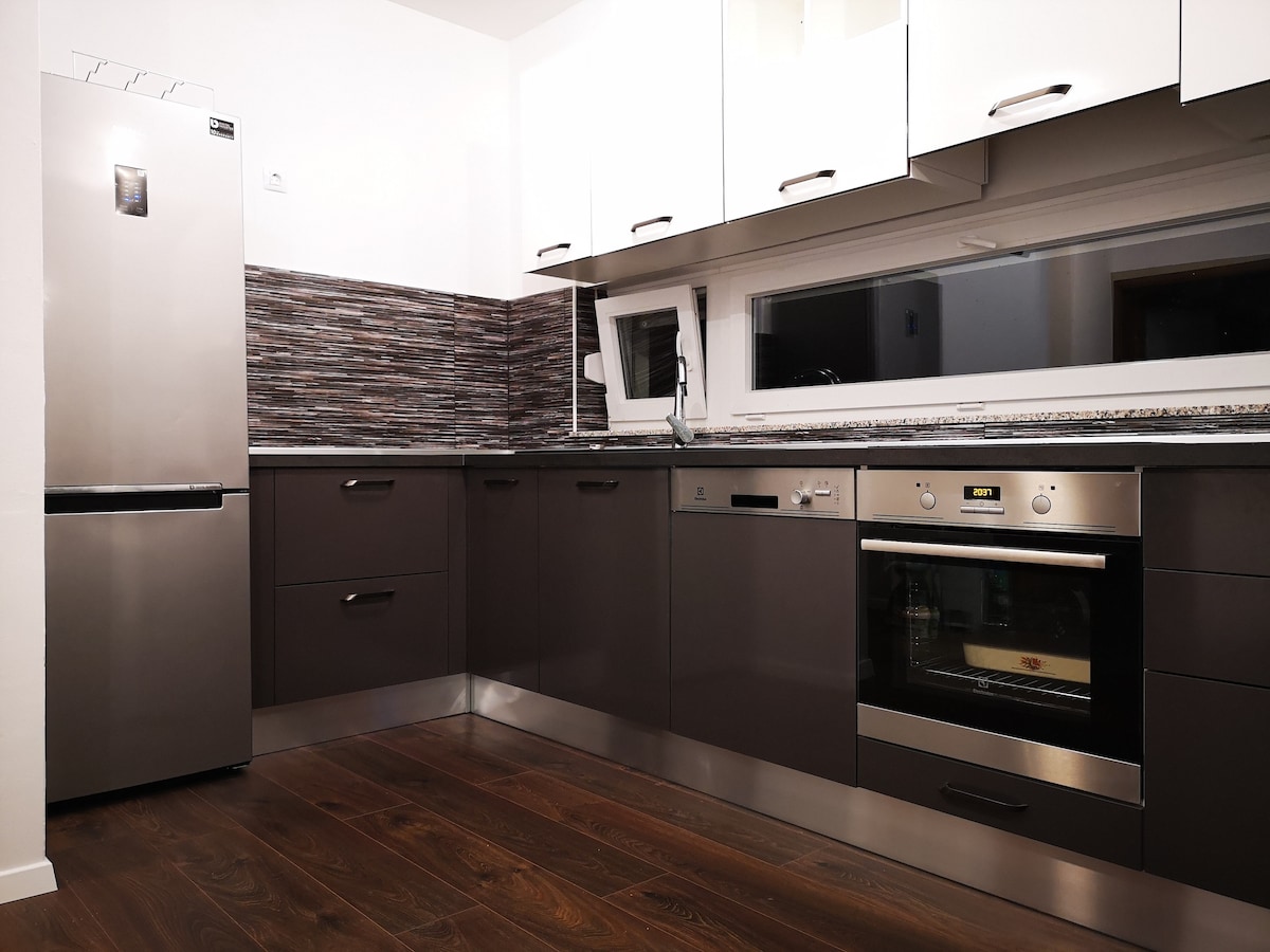 Dette moderne trehuset med to separate leiligheter er det perfekte valget for dem som reiser som et par og ønsker et rolig overnattingssted i kontakt med naturen. Huset ligger en fem minutters kjøretur fra Plitvice Lakes nasjonalpark. Huset består av to separate leiligheter, hver med egen inngang og egen terrasse. Leiligheten har en første etasje og et soverom ovenpå.
