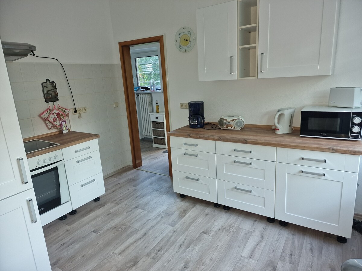 30 kvm leilighet i renovert tomannsbolig Inngangsparti Hovedrom 1,60 m seng, sofa (med soveplass i 1,30 m bredde), spisebord utformet som en skjenk Kjøkken fullt utstyrt (førsteklasses apparater, kaffe, te, sjokoladedrikk gratis) overfor dobbel vask til venstre inngang til åpen regndusj til høyre toalett (låsbar dør) el. rulleskodder hovedrom og toalett Plissert gardin på alle vinduer Kjøretøy kan parkeres rett utenfor eiendommen (blindvei)! Gårdsplassen er ennå ikke renovert