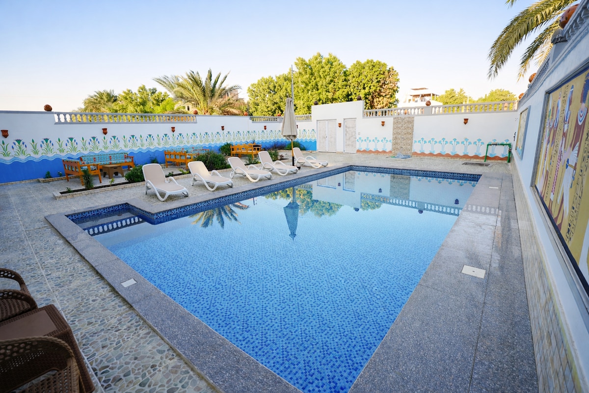 This private single room offers full hotel luxury and a rare double view of the Nile River and green farmlands. Features: - Comfort: Master bed, strong AC, smart TV, fast Wi-Fi. - Dining: Access to our luxury restaurant for 3 daily meals (Two extra charge). - Vibe: Relax in our unique outdoor space with a quiet, rural atmosphere. - Service: 24/7 front desk and daily housekeeping. - Location: Steps from Luxor Temple and West Bank ferry. Perfect base for exploring ancient Egypt!