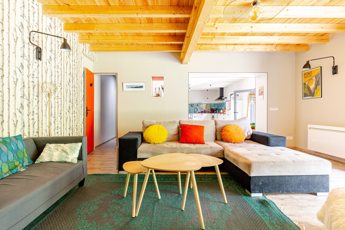Familieprosjekt, en barndomsdrøm, "det perfekte stedet" som min datter Prune petite sa. På 1400 m høyde med en fantastisk utsikt, er huset åpent mot fjellene, enten du lager mat eller ligger under dynen. Du vil være hjemme hos oss med min vinylsamling, våre kokebøker for å tilbringe den beste tiden med avslapning. Badet i lys, en invitasjon til å gå ut, vil du ikke gå glipp av turer fra huset.