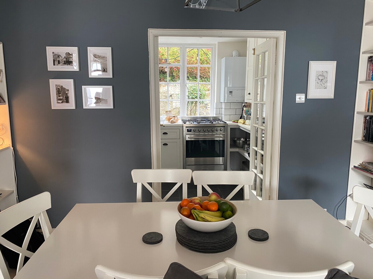 Kjæledyr er velkomne. Ikke mer enn to. Vær oppmerksom på at vi kan sove 6, men hytta passer sannsynligvis best enten 4 personer eller 4 voksne og 2 barn. 4 Home Farm South er en pen hytte med tre soverom og to bad som ligger på den private Rousdon Estate i nærheten av Lyme Regis. Det er fantastiske skogsturer og tilgang til Southwest Coast Path og en «hemmelig» privat strand! Første etasje er åpen med doble dører som åpner seg mot en inngjerdet og portet terrasse vendt sørover, og en plen med bord, stoler og parasoll.