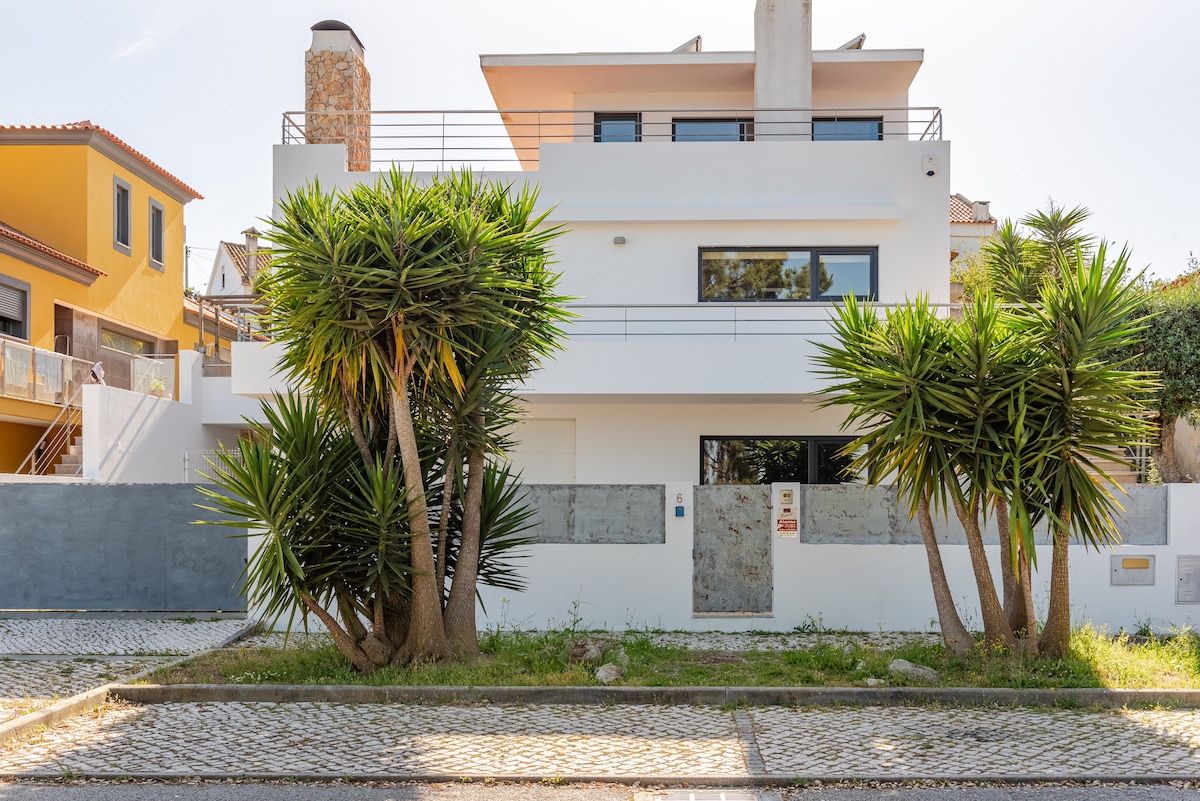 Fantastisk utsikt i Sesimbra! Med utsikt over klippen og den nydelige California-stranden, har bygningen privat tilgang til stranden og ligger innenfor 5–10 minutters gange til restaurantene/markedet/butikkene i sentrum. En 15 minutters kjøretur tar deg til Arrábida naturpark, en fjellkjede med uforlignelig skjønnhet som glir ned på hvite sand- og turkisvannstrender, ansett som et av Portugals naturlige underverker. På 45 minutter kommer du deg til Lisboa og flyplassen. .