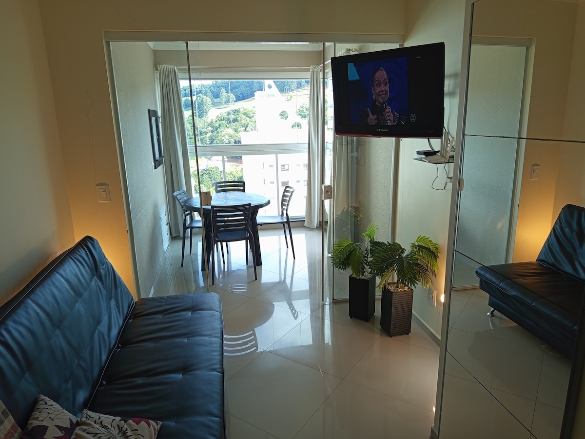 Leilighet 504. Moderne, koselig og fullt utstyrt. Innredet med sjarm og komfort for å gjøre oppholdet ditt komplett! Den har en gourmetbalkong med utsikt over naturen! Rolig og stille sted! Super beliggenhet... 60 meter fra Balneário. Gratis wifi og smart-TV. 1 gratis privat garasjeplass. Soverommene og stuen/kjøkkenet har aircondition. Viner tilgjengelig for forbruk og til redusert pris!