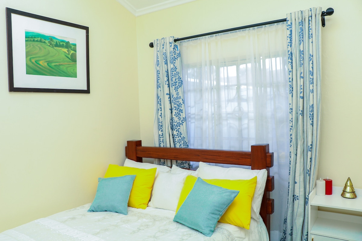 I nærheten av JKIA lufthavn, ideelt for lange mellomlandinger, overnattingstransitt, forsinkede eller kansellerte flyreiser. • Privat bungalow, eget område • 2 soverom, 1 bad • Trådløst nettverk med høy hastighet • Fullt utstyrt kjøkken. • Komfortable senger, 10-tommers ortopediske madrasser. • Alle tilgjengelige fasiliteter • To minutter fra Imaara Mall (treningsstudio, restauranter, apotek, valutaveksling, banker, sykehus, supermarked, vaskeri, salonger, barberere, spa, puber, klær osv.) • Plettfritt rent