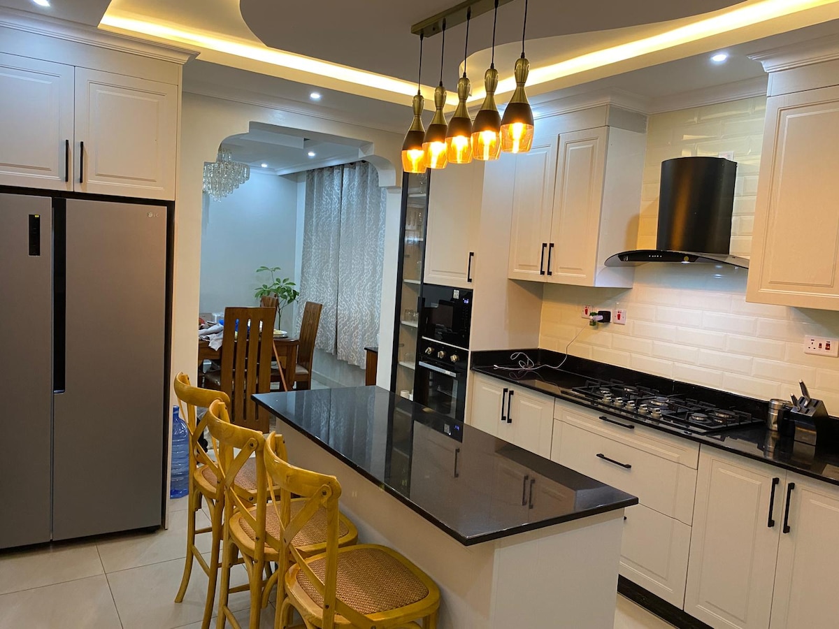 Ha det gøy i denne luksuriøse herregården med fem soverom, designet for familier, grupper eller venner som ønsker komfort, moro og avslapning. Et fullt utstyrt kjøkken, komfortabel stue og høyhastighetsinternett. Maksimal sikkerhet med overvåkningskameraer døgnet rundt. Bare fem minutters kjøretur til alle kjøpesentre og et stort supermarked, mange underholdningsområder. 40 minutter til Nairobi nasjonalpark og 30 minutter fra JKIA flyplass. 20 minutter til Syokimau SGR terminal.